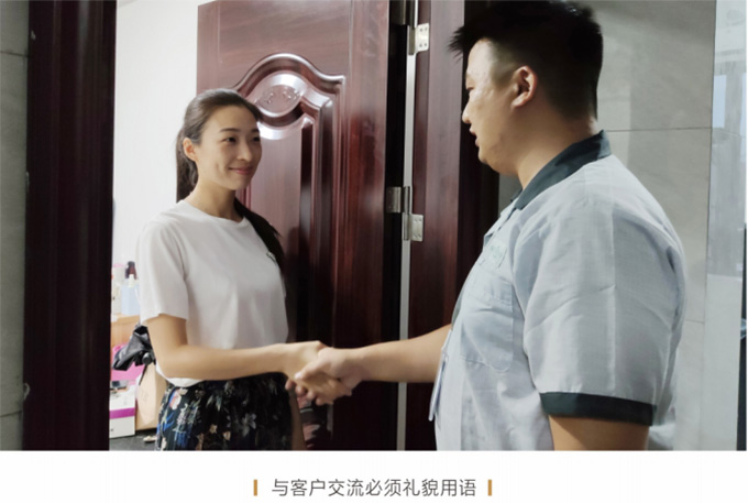 心理準備:充分理解顧客信息,對上門的路線,時間要予充分考慮。按時上門,嚴禁遲到或無故失約,若中途出現特殊情況,必須提前與顧客聯系,解釋原因,并向顧客道歉。