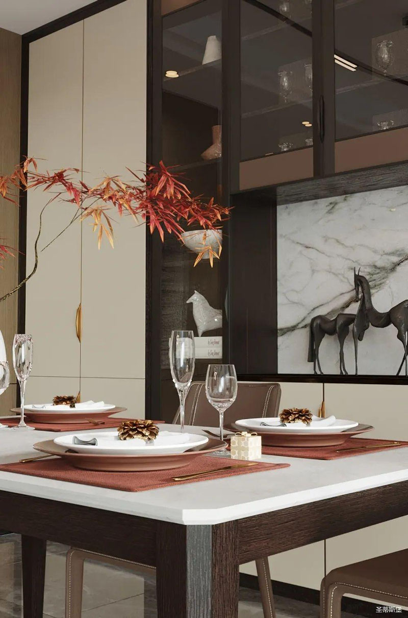 一字型布局的開放空間,強化了餐廚的開闊感,延伸了空間的舒朗視野。純白調的天然餐桌,與周圍空間融為一體,映襯著空間的純潔美好。意式簡約的紅色餐椅,線條簡潔凌厲到能輕易征服人心,一隅紅楓點綴其中,視覺層次感瞬間得到提升,讓人于靜簡和清歡之間,感受人生百味。