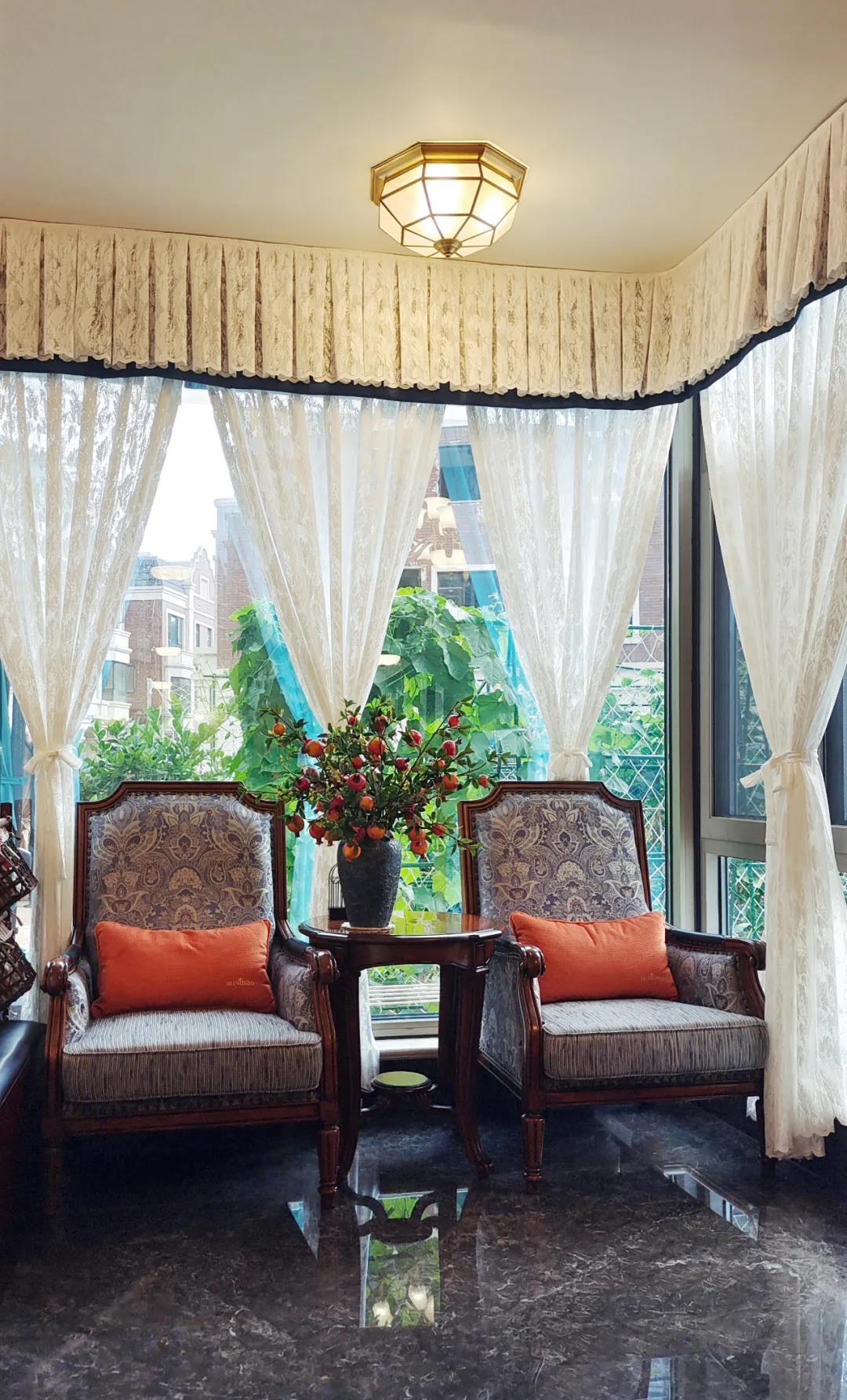 業主夫婦非常熱情好客,平時工作之余也會在家里邀三兩好友一起觀影,觀影室的整體設計容納著濃烈的古色古香,長方形圖案排列搭配復古的家具與配飾,精細的雕花藝術,于細節之間演繹著精致生活。不管時光如何輾轉變換,家的定義從不曾改變,它撫慰著我們的心靈,承載著我們的喜樂,從細膩的質感中感知家的點滴變化,才是對生活最真實的寫照。