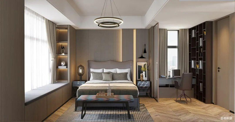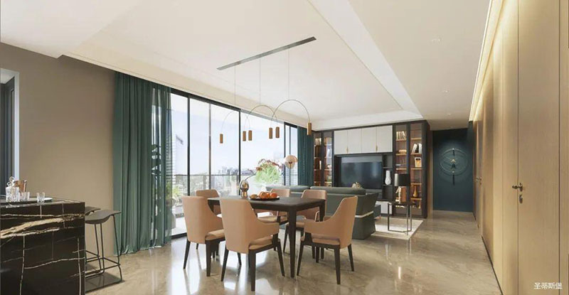 圣蒂斯.里奧以極致簡練為追求,精致的線條和考究的材質搭配極具時尚感,使產品煥發舒適怡人的現代氣息。里奧系列非常強調整體空間和諧共生,整體家裝理念完美運用于產品全案設計中,賦予全系產品意式極簡的獨特氣質。