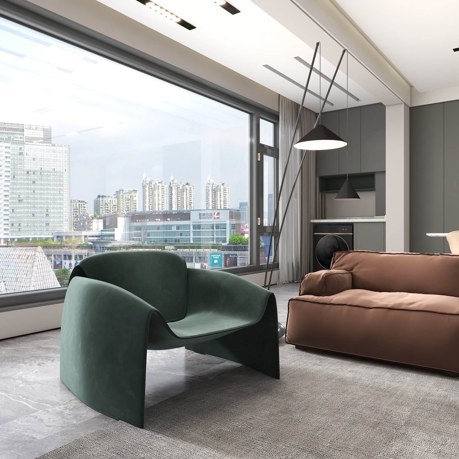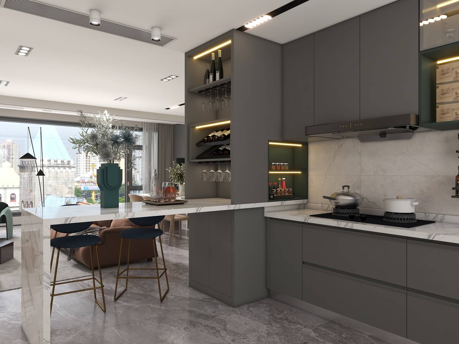 長廊形式的西廚,引起視覺上的延伸效果,實(shí)現(xiàn)空間上的自由感,讓自然與光影去隨意裝飾,浪漫與溫馨的氛圍在其中蔓延。