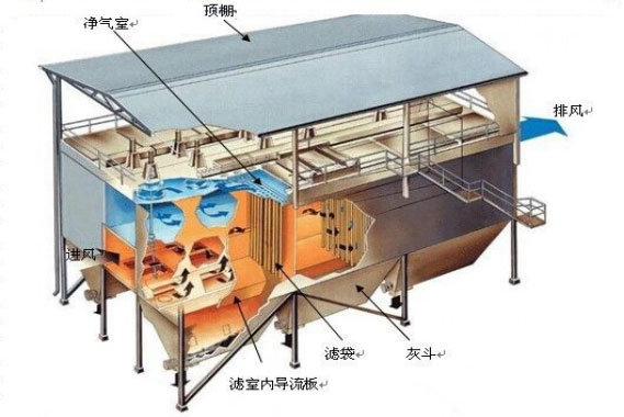 濾袋、籠骨和花板-----濾袋和籠骨組成了除塵器的濾灰系統(tǒng);花板用于支撐濾袋組件和分隔過(guò)濾室(含塵段)及凈氣室,并作為除塵器濾袋組件的檢修平臺(tái);濾袋組件從花板裝入